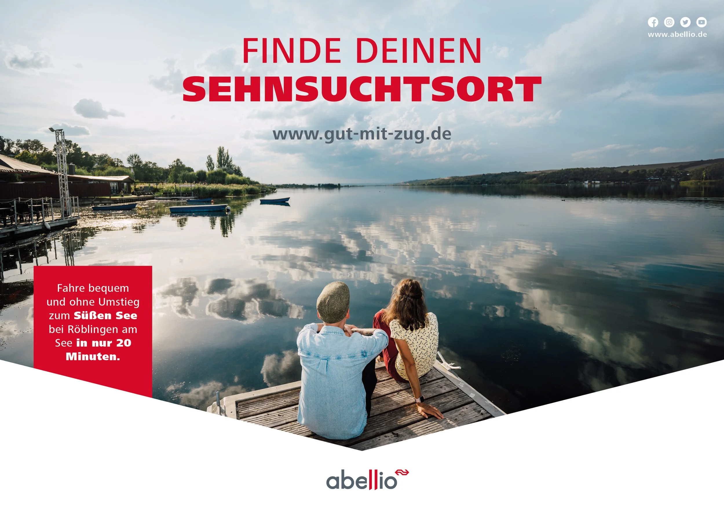 Für die Bahngesellschaft Abellio Mitteldeutschland fotografiere ich seit zwei Jahren die größte Werbekampagne “Gut-mit-Zug”. Out of Home zeigen Plakate Reiseziele entlang des Streckennetzes und verweisen auf die gleichnamige Website, die alle Ziele genauer vorstellt: https://gut-mit-zug.de